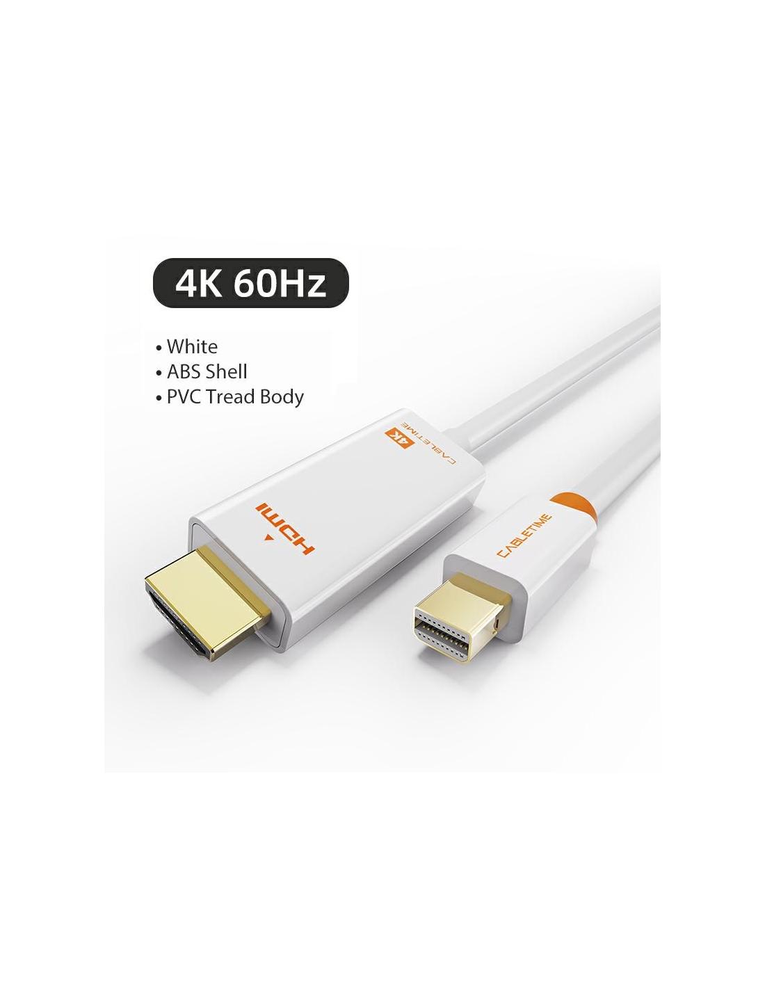 MACH POWER Mini Display Port to HDMI 4K/60Hz Cable, Gold Plated,White,1.8m