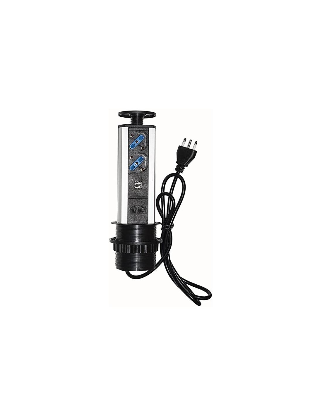MULTIPRESA DA TAVOLO A SCOMPARSA CON 2 PRESE SCHUKO1 RJ45, 1 RJ11, 2 USB